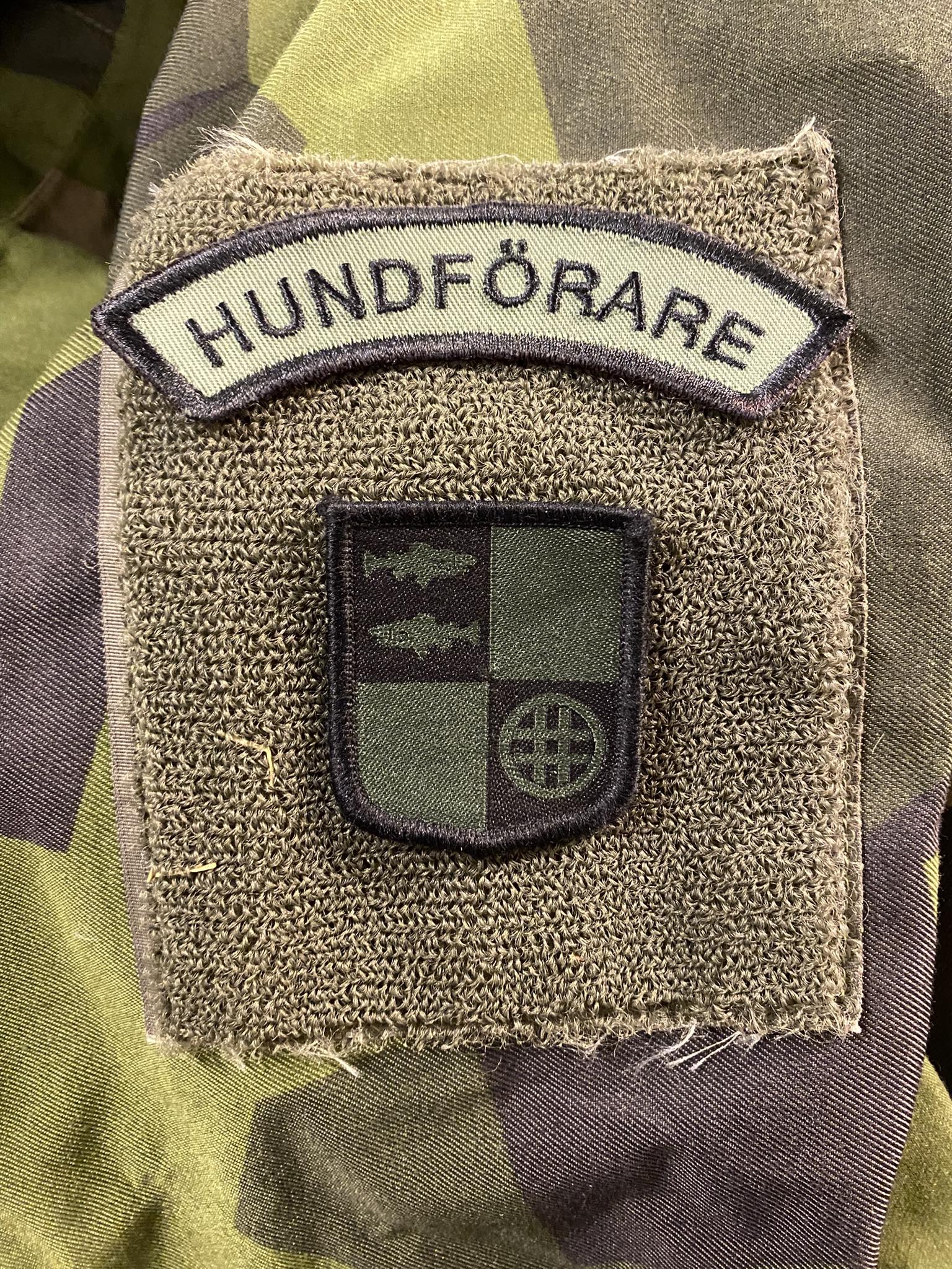 Militära bågar, olivgröna med svart text. bredd 11 cm. På baksidan monteras svart kardborre.